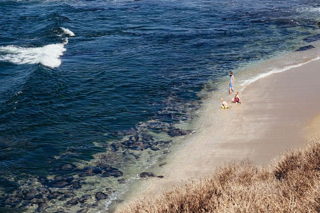 Barefoot children walk along the shoreline at sunset in San Diego – nostalgic family travel photography by Gaby Ojeda View fullsize